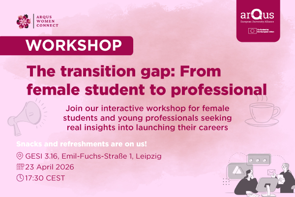 Arqus continues to foster collaboration and empowerment across its network with the second event of the current Arqus Women Connect project cycle, set to take place in Leipzig. The event will occur on 23 April at 17:00 in room GESI 3.16. Light refreshments and snacks will be provided. This interactive workshop is designed to support students, graduates and young professionals as they take their ...