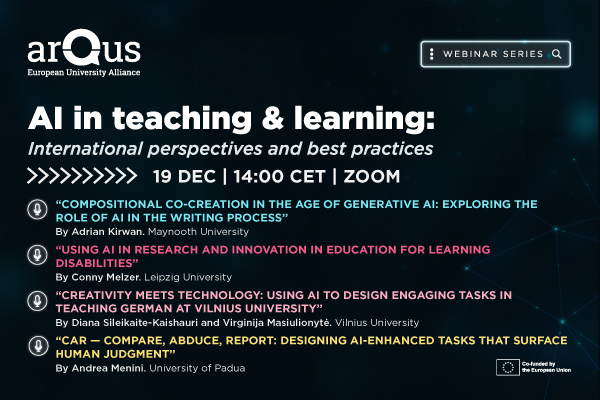 Artificial intelligence is changing university teaching – but how can it be used effectively? In this series of online workshops, experts from Arqus universities share their experiences and challenges in using AI in teaching. The first session of the series will take place on 28 November at 14:00 CET on Zoom.