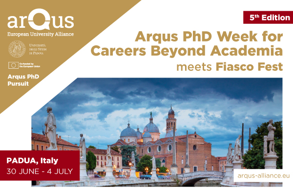 The 5th Edition of the Arqus PhD Week for Careers Beyond Academia meets Fiasco Fest. The next Career Week will take place at the University of Padua from 30 June to 4 July 2025.