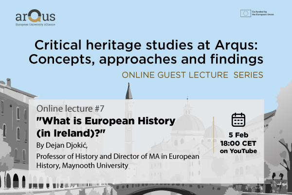 Join us on the seventh and last session of the “Critical heritage studies at Arqus: concepts, approaches and findings” online guest lecture series, titled “What is European history (in Ireland)?”, with Dejan Djokić (Maynooth University). The online lecture will take place on 5 February 2026 at 18:00 CET.