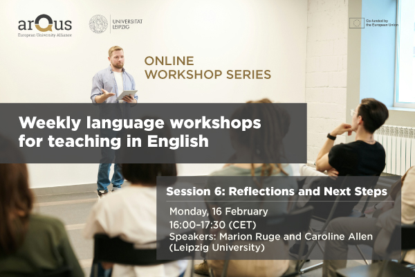 The kick-off session of the workshop series “Weekly language workshops for teaching in English” is titled “Reflections and Next Steps”. It will take place on 16 February 16:00 to 17:30 CET.