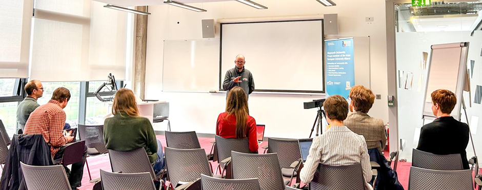 As part of our programme in Maynooth, we also hosted a public talk with members of the Open Science Ambassador Network. The event opened with a welcome from Mr Ben Finnegan of the MU Arqus Management Team, who greeted the ambassadors, introduced the work of Arqus at Maynooth University, and highlighted the value of this network for encouraging collaboration and open research practices.