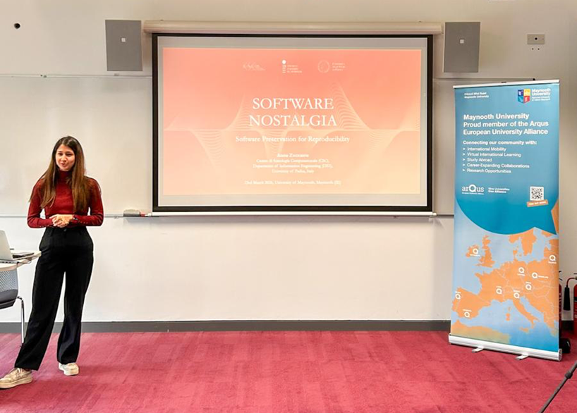 We then had a presentation from PhD student Anna Zuccante (University of Padua) titled “Software nostalgia: Software preservation for reproducibility”. She spoke about the importance of cultivating and archiving software on public platforms to maintain sustainable access to code and software over time. As part of this discussion, she presented the idea of using machine learning to support software preservation, helping to maximise existing documentation efforts while also reducing the amount of manual work involved.