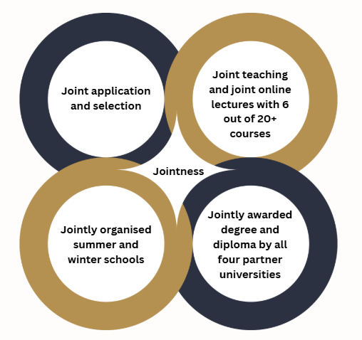 The consortium combines the regional and academic expertise of the four partner universities, all of which have long-standing experience in European Studies. The programme aims to equip students with the analytical skills needed to examine Europe’s past, present and future roles on a research basis and to contribute to the analysis and development of political, economic, social and cultural projects.