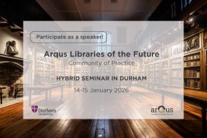 The Arqus Community of Practice ‘Libraries of the future’ invites staff members of the Arqus universities to their hybrid meeting ‘Cultural heritage in Arqus Member Libraries’, organised by Durham University on 14 and 15 January 2026. The seminar will be online and at Durham University. The theme of this event is “Library activities in European Cultural Heritage and Arqus Member Libraries”, focusing on ...